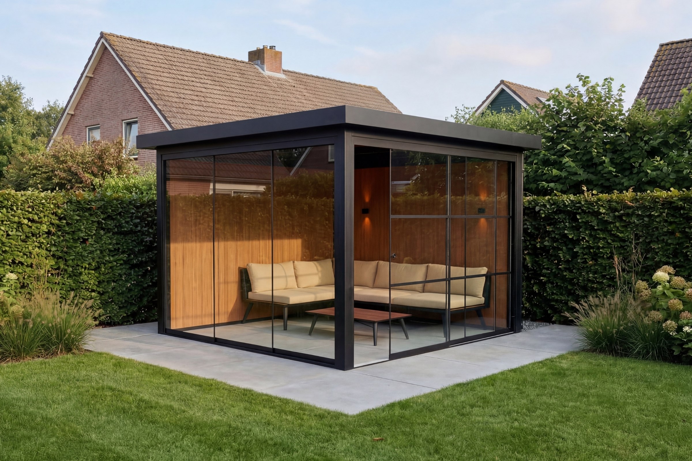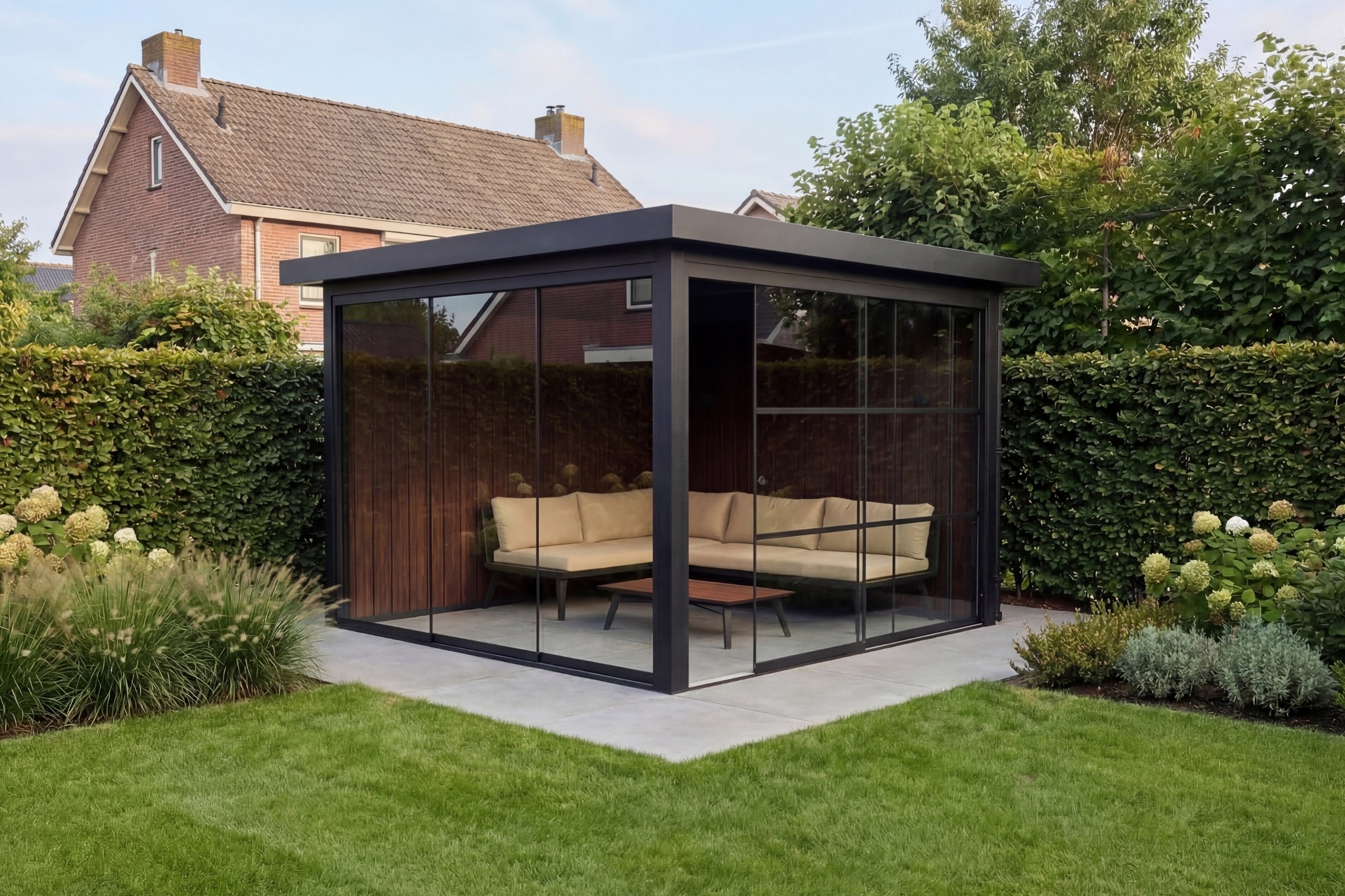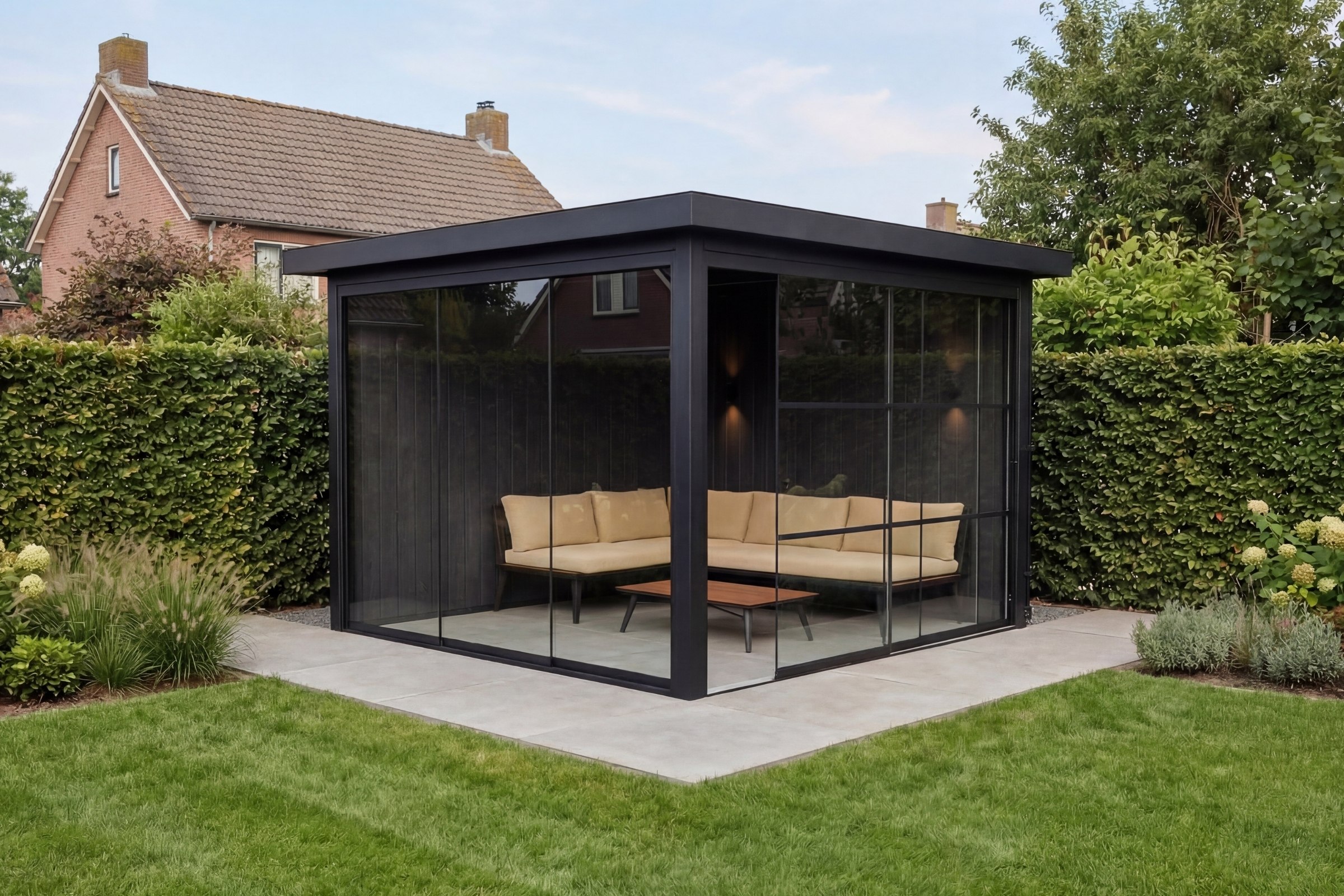 Ob gemütliche Leseecke, kompakte Lounge oder stilvoller Arbeitsplatz – das Panorama Base bietet Ihnen eine Oase der Ruhe und des Komforts im eigenen Garten.