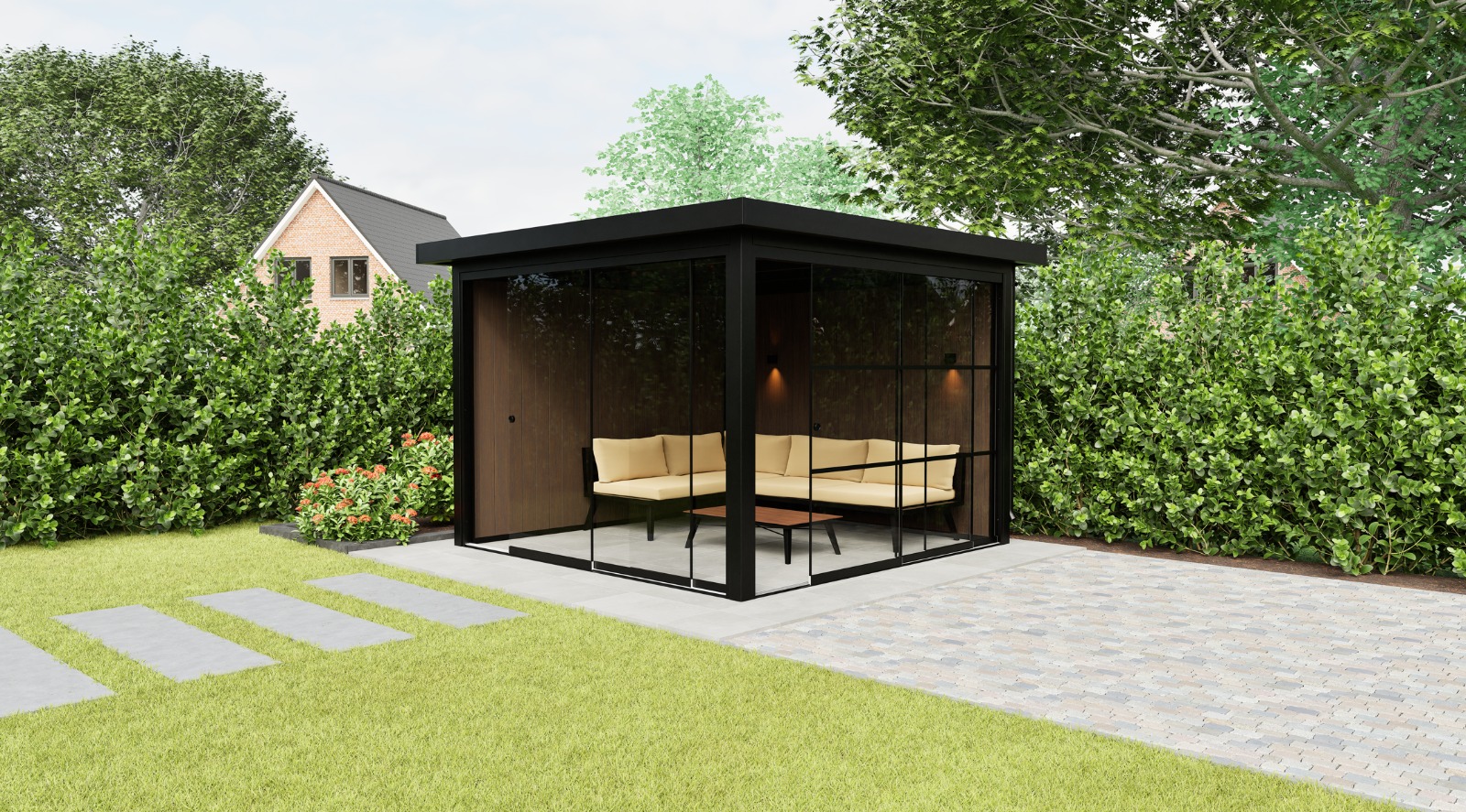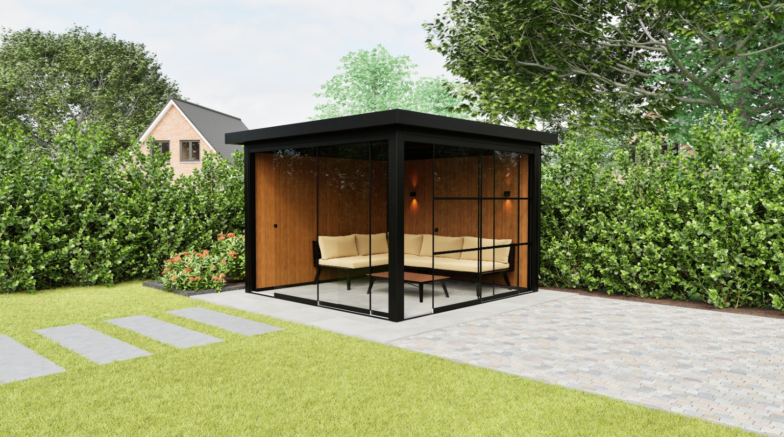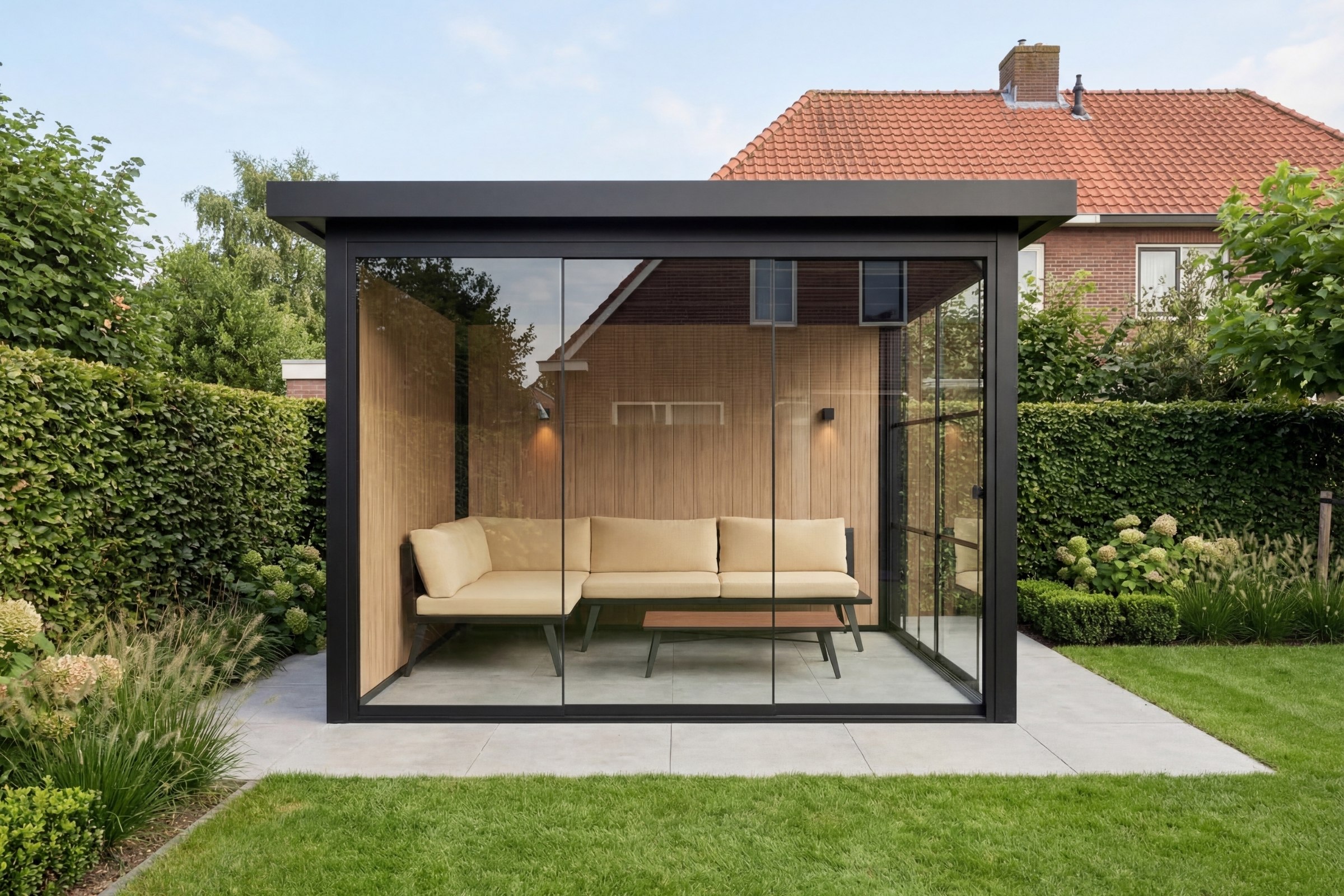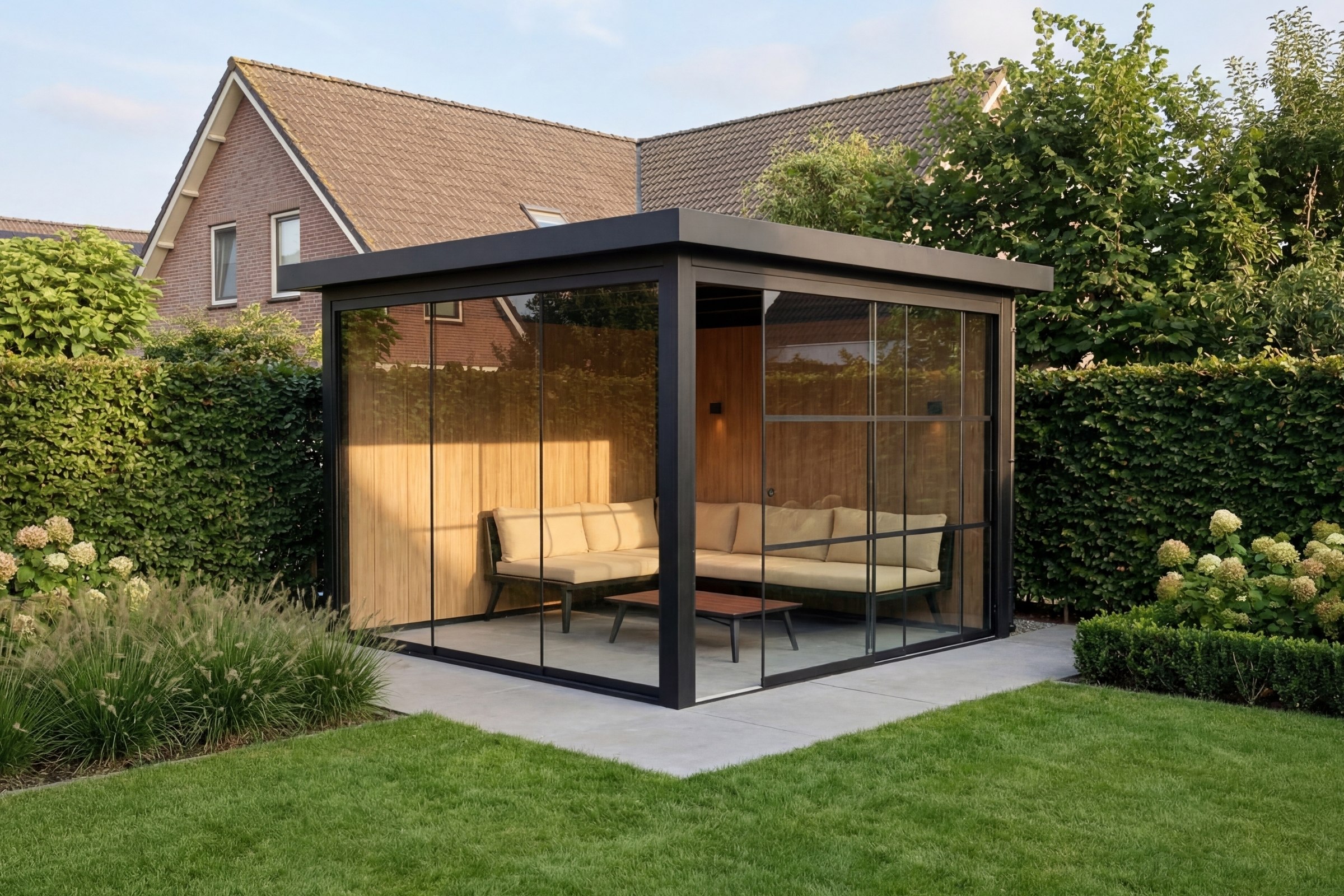 Ob gemütliche Leseecke, kompakte Lounge oder stilvoller Arbeitsplatz – das Panorama Base bietet Ihnen eine Oase der Ruhe und des Komforts im eigenen Garten.