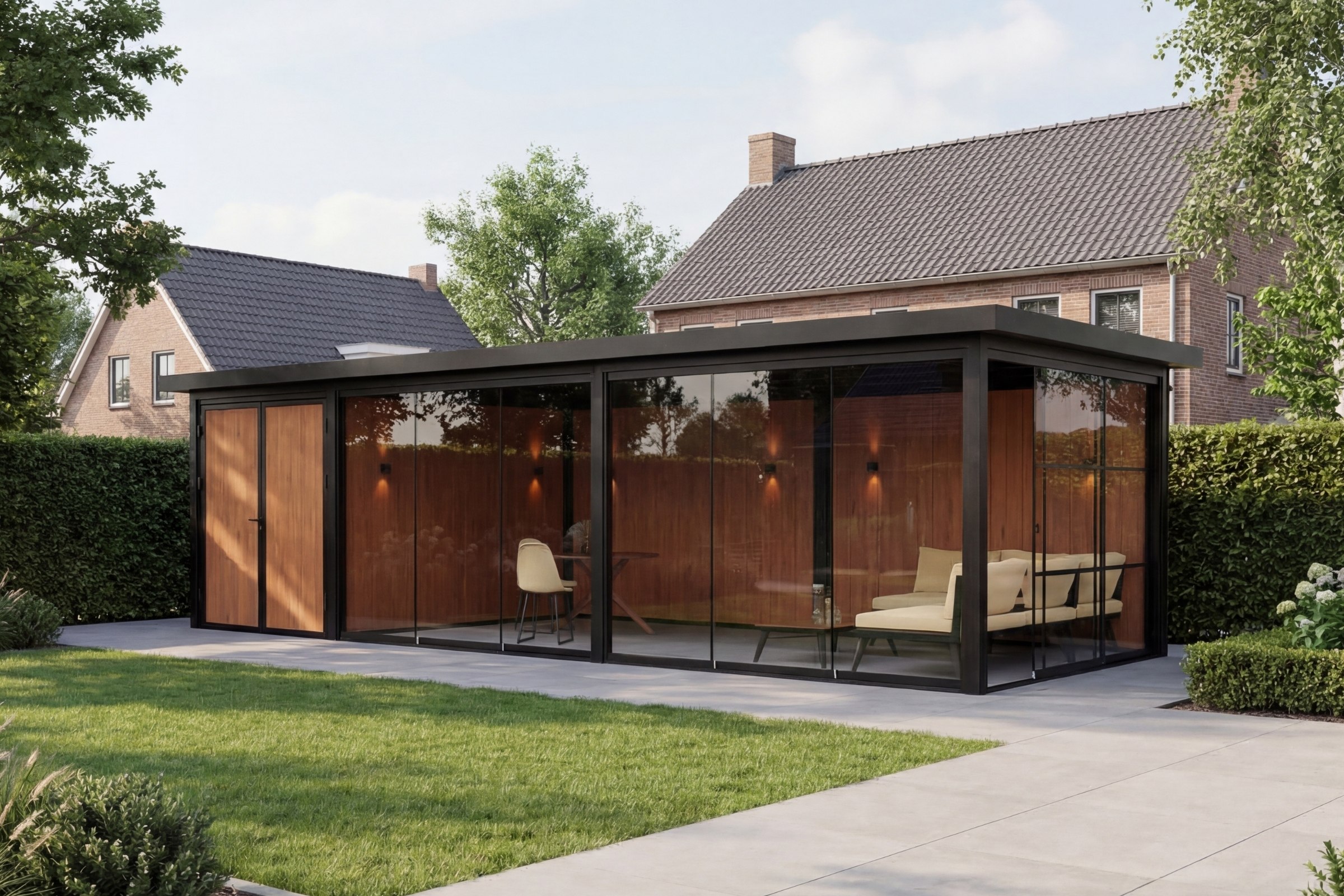 Das Panorama Prestige wurde für Menschen entworfen, die das Leben im Freien in vollen Zügen genießen möchten. Ob Loungelandschaft, Outdoor-Büro oder kleines Gartenrestaurant – dieser Gartenraum vereint Raumgefühl, Komfort und Ausstrahlung in einer rundum wartungsfreien Lösung.